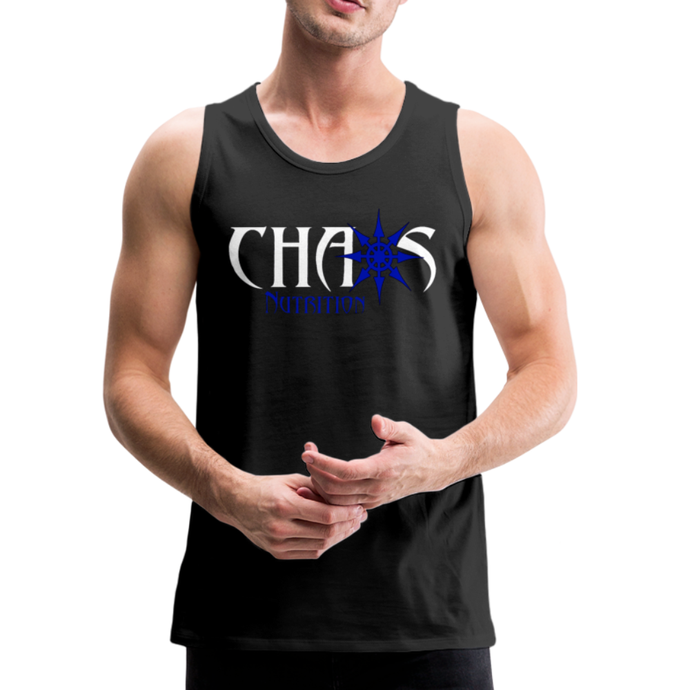 CHAOS NUTRITION, Black Tank Top with Blue- White Lettering - black