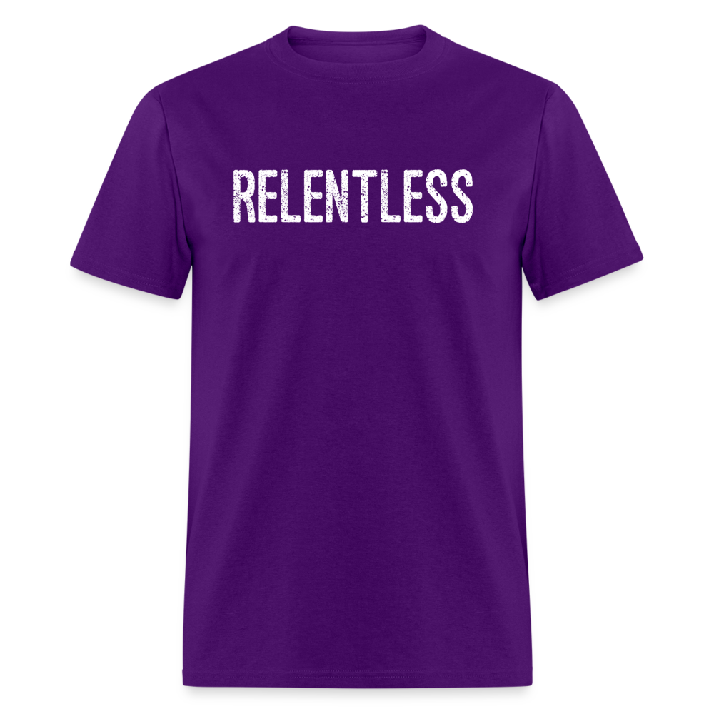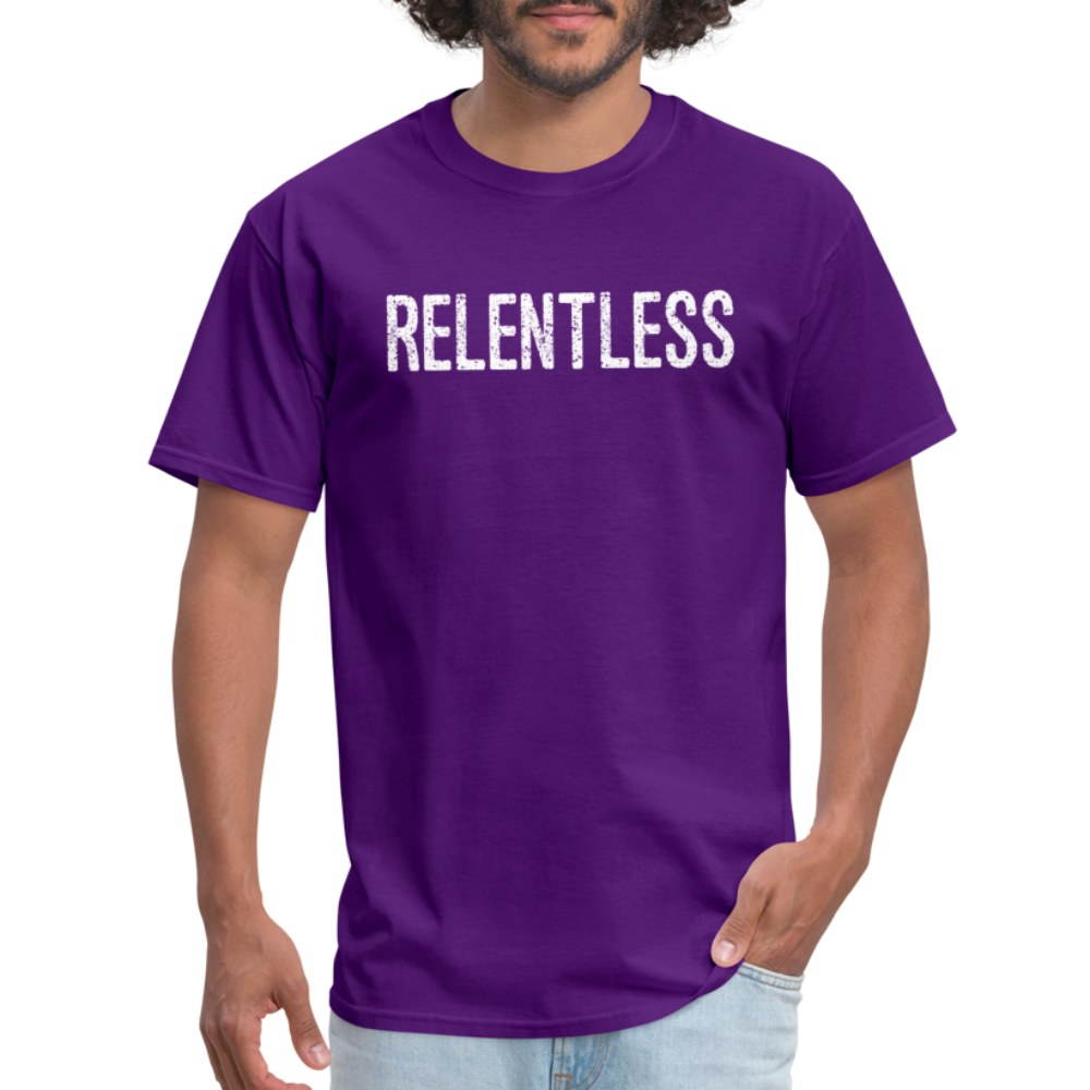 RELENTLESS T-SHIRT with WHITE LETTERING - purple