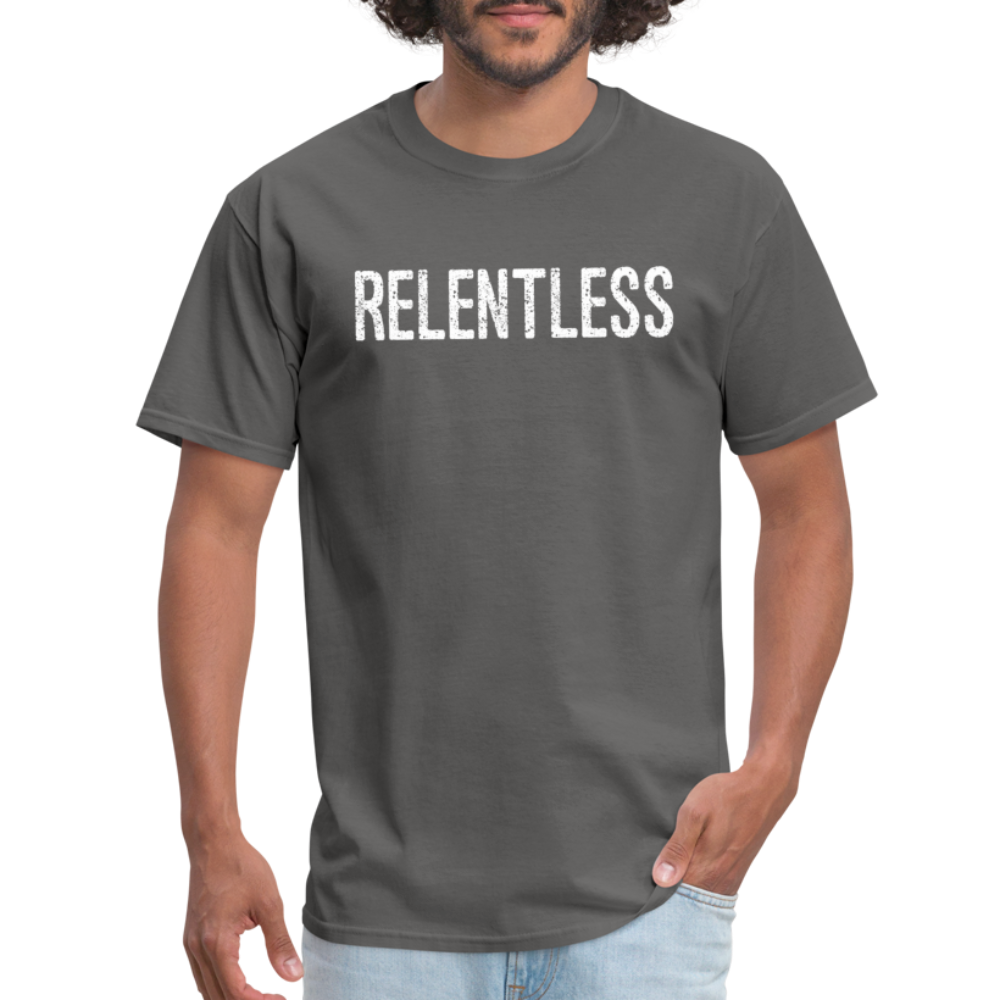 RELENTLESS T-SHIRT with WHITE LETTERING - charcoal