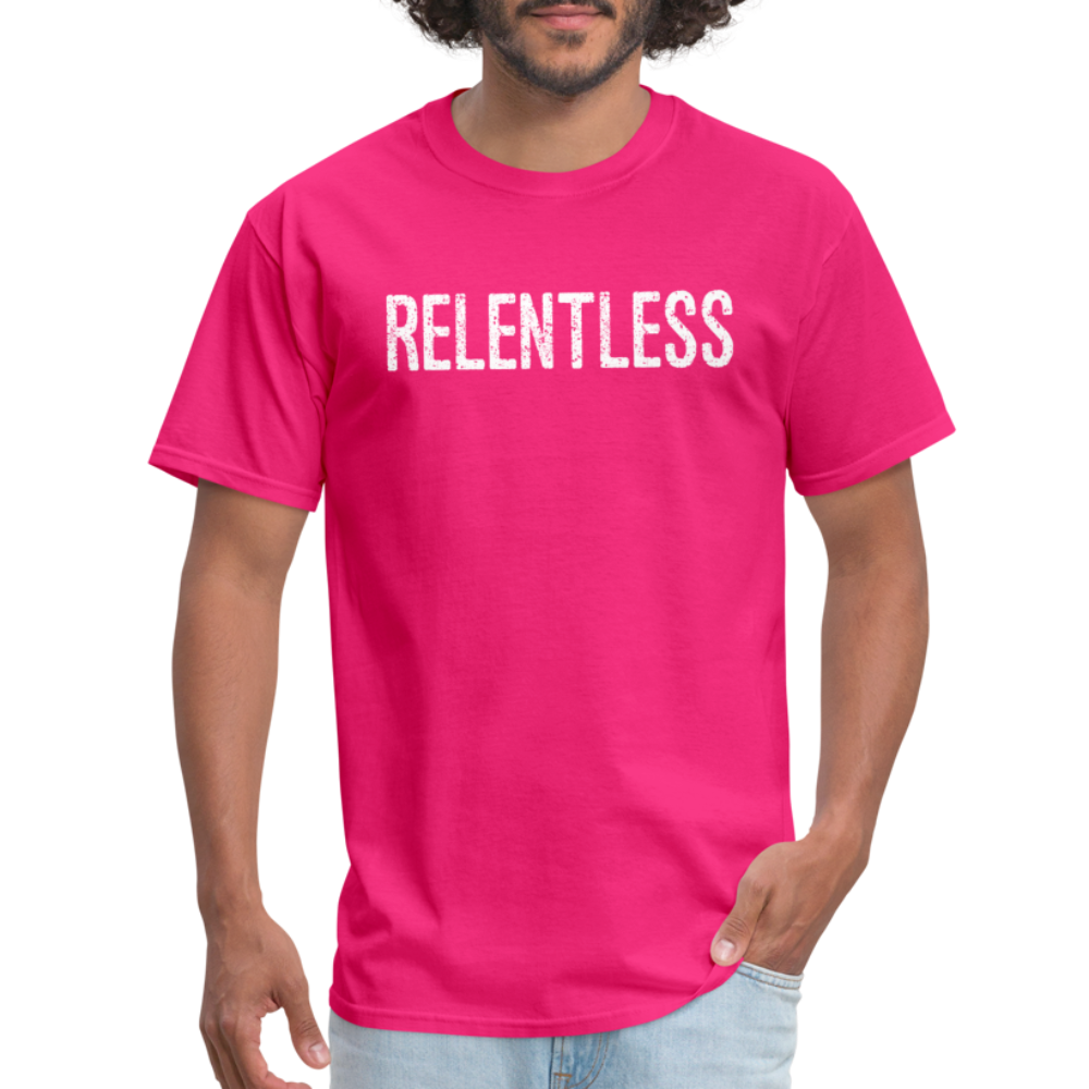 RELENTLESS T-SHIRT with WHITE LETTERING - fuchsia