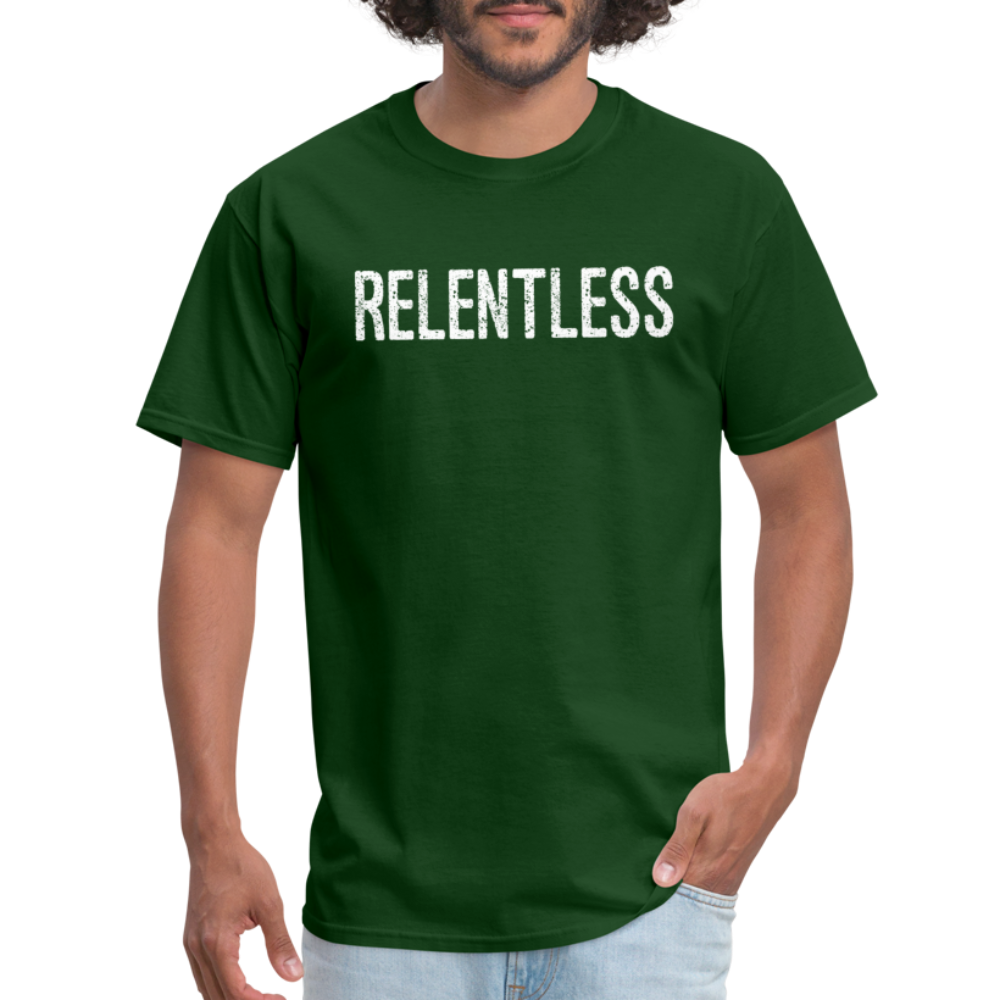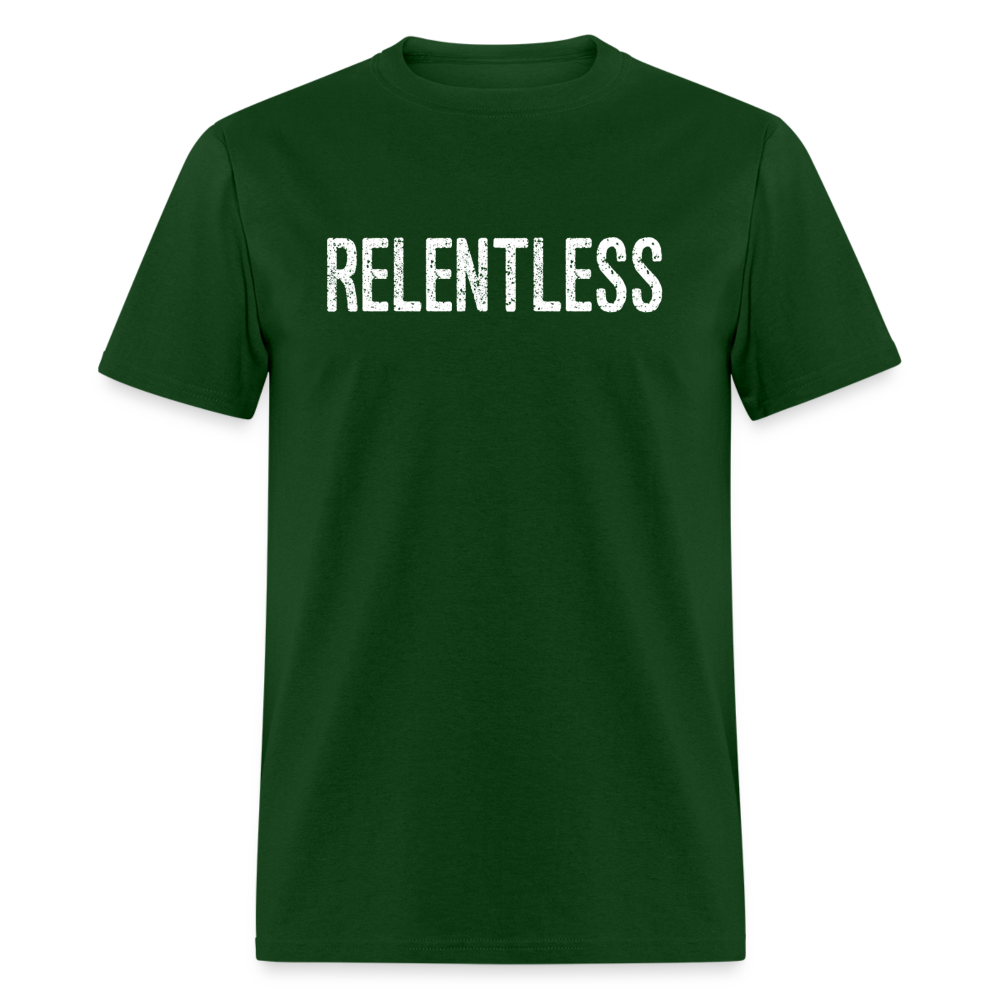 RELENTLESS T-SHIRT with WHITE LETTERING - forest green