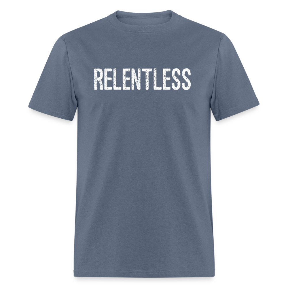 RELENTLESS T-SHIRT with WHITE LETTERING - denim