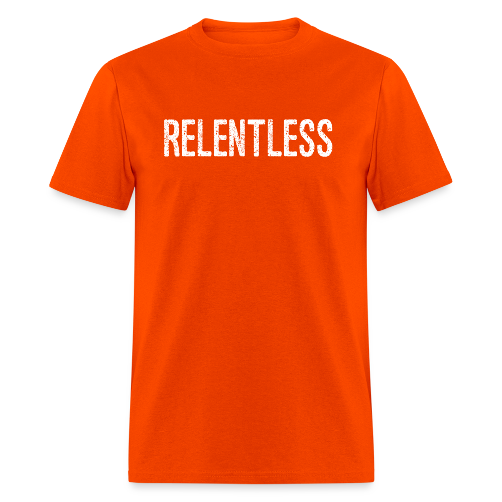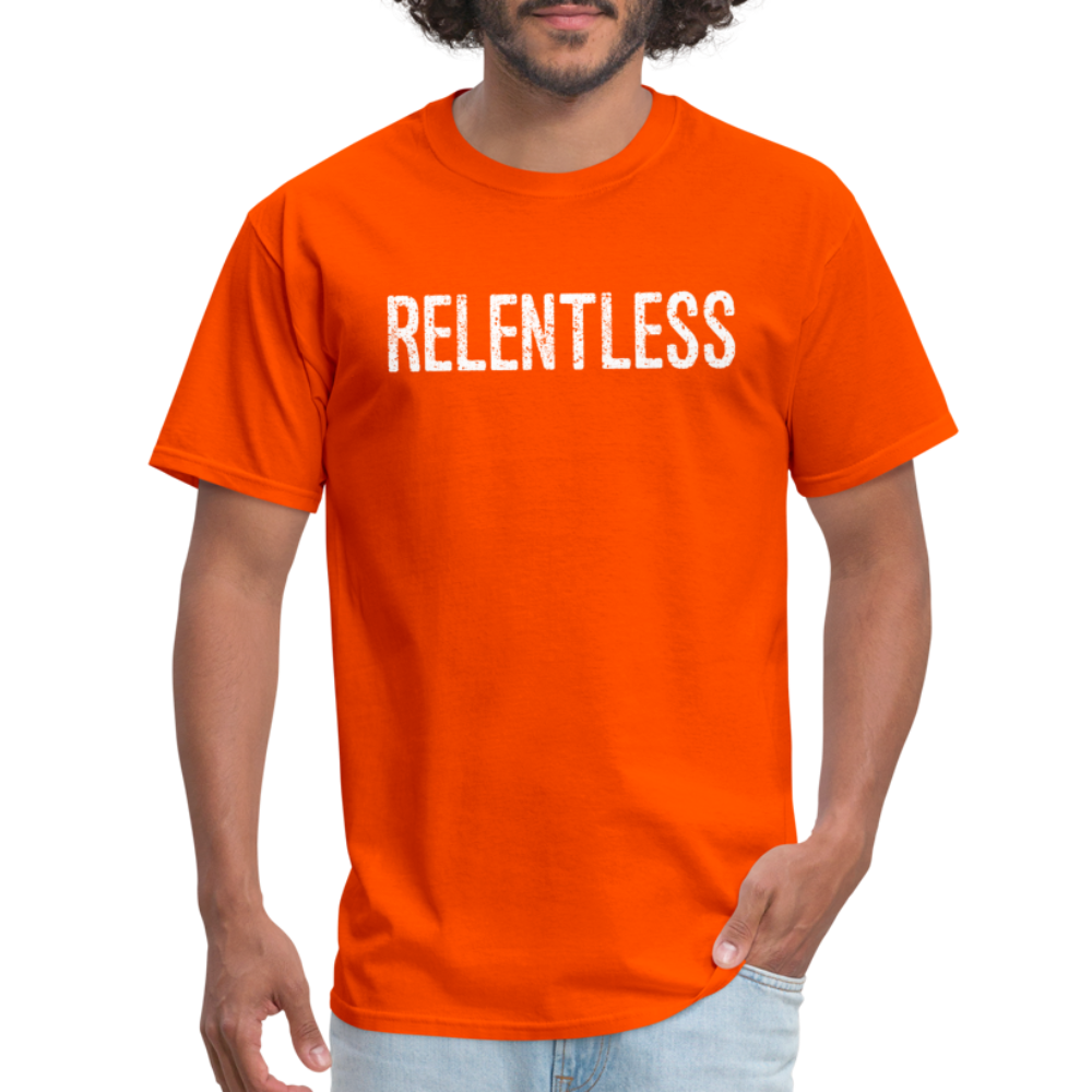 RELENTLESS T-SHIRT with WHITE LETTERING - orange
