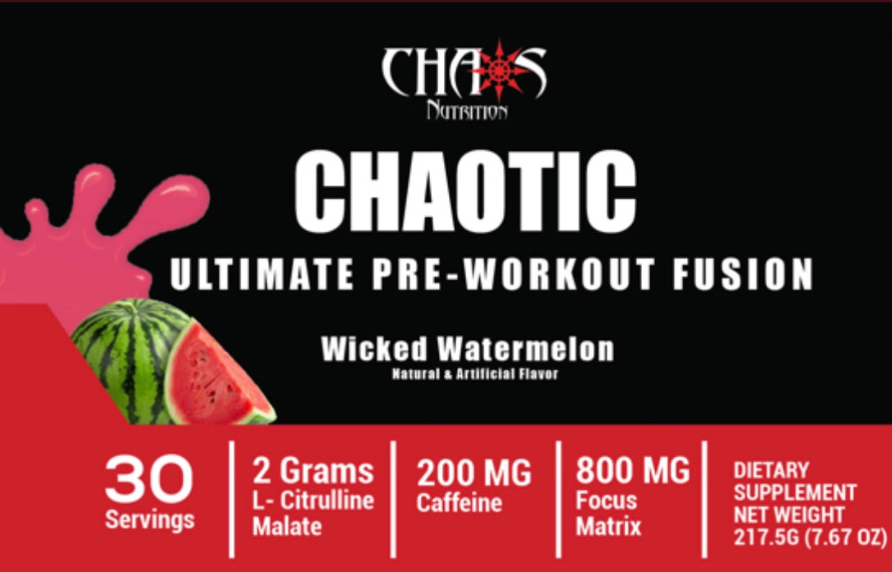 CHAOTIC is the ultimate pre- workout fusion designed to enhance ENERGY, FOCUS, POWER, and STAMINA.