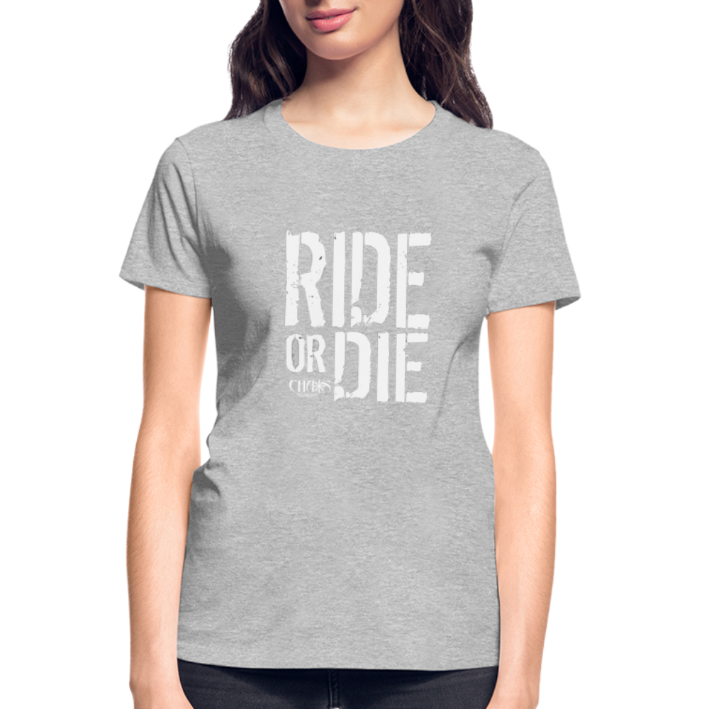 Ride Or Die Women's T-Shirt White Logo - heather gray