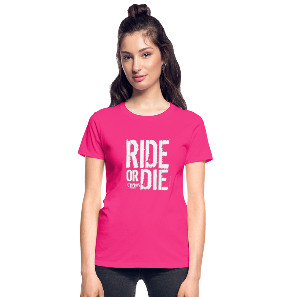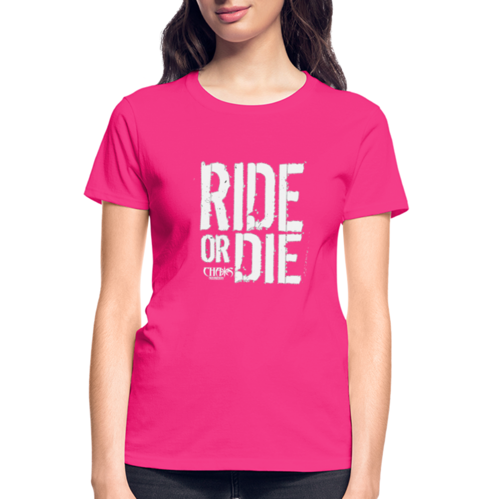 Ride Or Die Women's T-Shirt White Logo - fuchsia